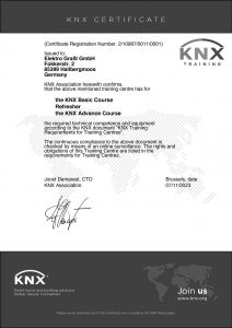 Durch unsere KNX-Kurse erhalten Sie nach deren Abschluss und bestandener Prüfung das KNX-Zertifikat. Wir bieten für Sie sowohl KNX-Grundkurse, als auch KNX-Aufbaukurse an.