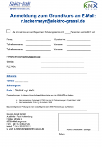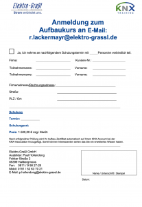 Füllen Sie zur Anmeldung ganz einfach das Anmeldeformular vollständig aus und schicken es unterschrieben an r.lackermayr@elektro-grassl.de